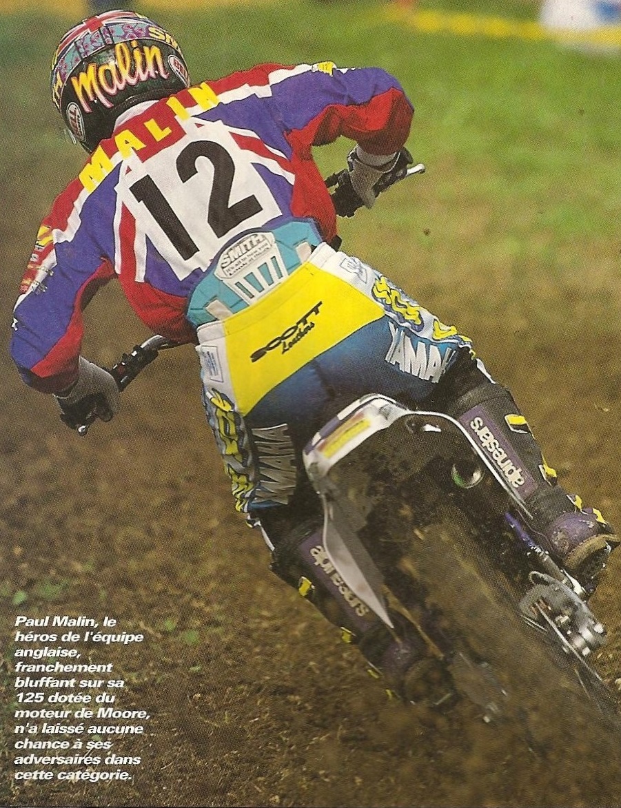 Paul Malin (vainqueur du Motocross des Nations en 1994) : " Fierté ! Rouler pour votre pays c'est...parce que, vous savez les footballeurs, les rugbymen ont la chance jouer pour leur pays. En moto GP, en motocross, c'est de l'individuel. Pour nous, c'est super de mettre le maillot de notre pays. et d'essayer de faire le mieux possible. Mon meilleur souvenir est mon premier Motocross des Nations a Wimmerby en 1990. La personne qui désignait les casques, s'appelait Miles Carter. Et pour les Nations, on pouvait avoir un personnage de dessiné. James Dobb avait un bulldog comme un bouledogue britannique, Rob Herring avait un requin et moi, j'avais Eddie, la mascotte d'Iron Maiden. Donc on était des samouraïs a la guerre ! Et trois semaines après les Nations, je suis allé a un concert d'Iron Maiden et le groupe a signé mon casque ! Bien sûr avec notre victoire, Roggenburg est un de mes bons souvenirs ! "