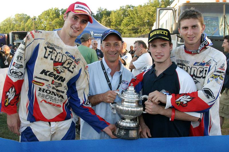 Thierry Van Den Bosch (membre de l'équipe de France de Motocross) : " C'est une course par équipe ou l'on représente la nation. L'aspect de faire gagner la France est très important et c'est sûr qu'on est contents qu'il y ait des champions du monde français dans des catégories individuelles et la c'est un peu les Jeux Olympiques du motocross. Donc c'est sûr que c'est différent et puis dans le fonctionnement c'est arriver a faire tourner une équipe de trois pilotes qui sont des fois rivaux tout au long de la saison. Donc c'est super intéressant et puis pour moi ça reste le rendez-vous de l'année au niveau du motocross. Et souvent ça permet aussi d'unifier un petit peu les deux mondes que sont le motocross en Europe et puis le motocross aux Etats-Unis. Et il y aussi les pays émergents, des pays de l'hémisphère sud. Tout ça fait que c'est l'événement de l'année en motocross pour moi. Ma fonction au sein de l'équipe de France, c'est d'être sur la piste et d'apporter des informations sur la gestion du week-end, sur les trajectoires, sur tout ce qui est lié a la performance et a la stratégie. Mon meilleur souvenir, je dirais le premier que j'ai pu faire donc en 2015 a Ernée puis je dirai l'autre aussi, le dernier a Ernée, la dernière victoire a Ernée, vu que c'est a domicile et puis c'est toujours un petit peu particulier. "