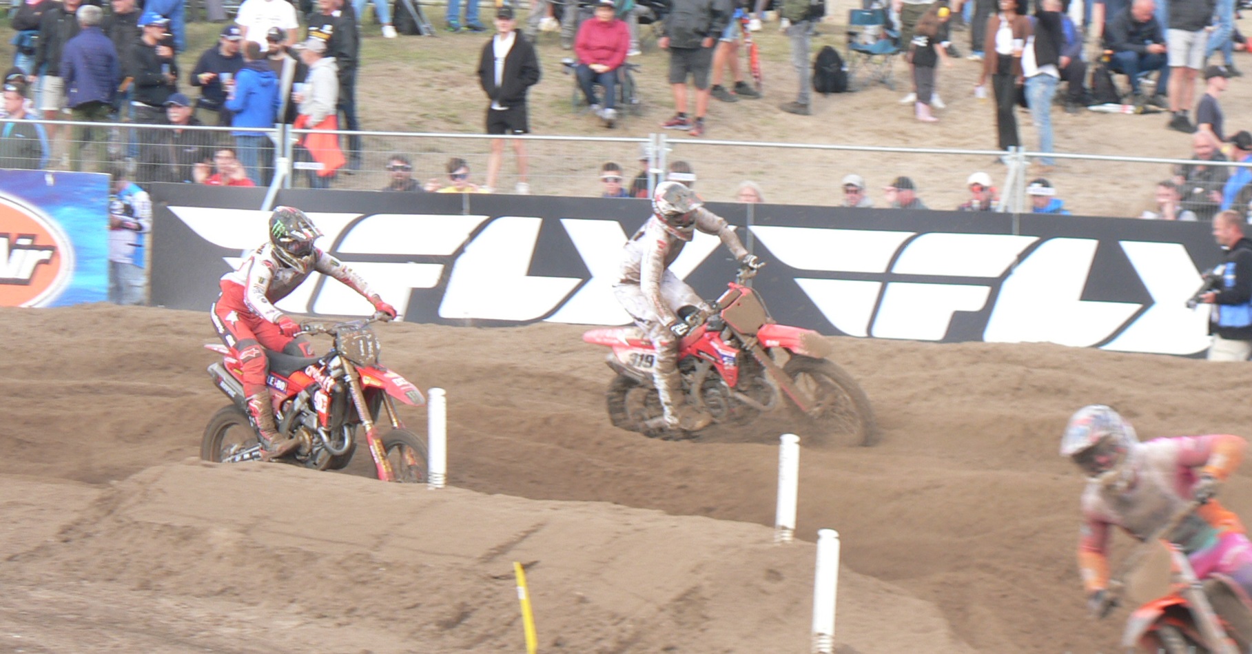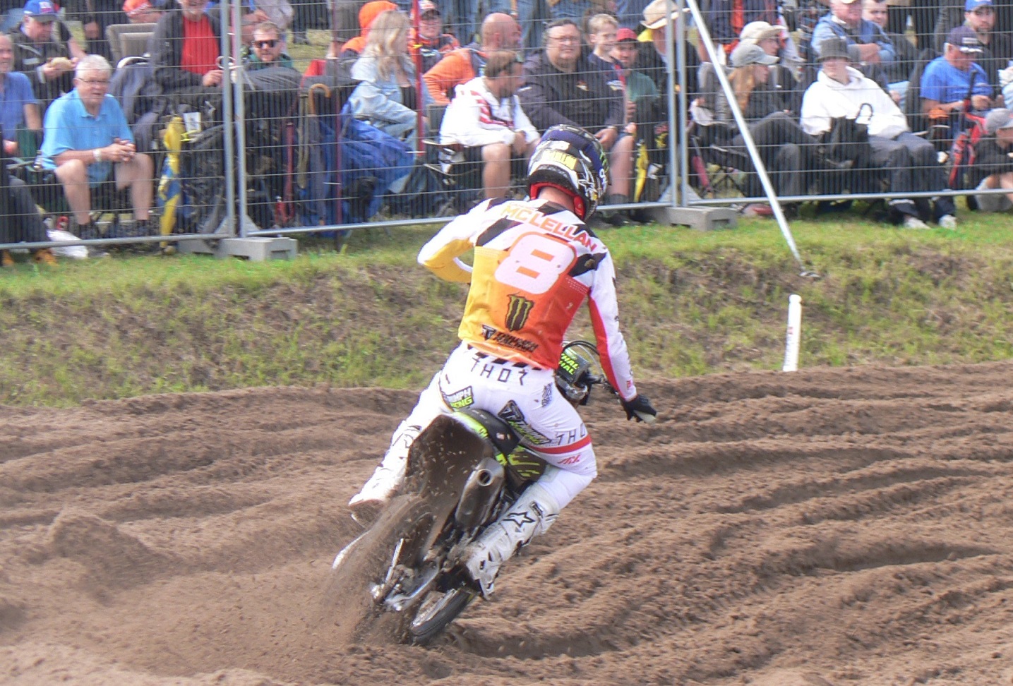 Très loin derrière, un Elzinga laborieux finit en 8ème position devant Braceras, auteur d'un très bon départ, et le quasi local Walwoort. Triste journée pour Reisulis, mal parti mais bonnement remonté dans le top 10 avant que sa Yamaha ne rende l'âme dans un nuage de fumée qui n'est pas sans rappeler quelques douloureux précédents Outre-Atlantique cette saison. Enfin, notons la performance tout a fait respectable de la jeune Van Drunen qui met derrière elle, a la régulière et au physique 2 pilotes de la catégorie MX2.