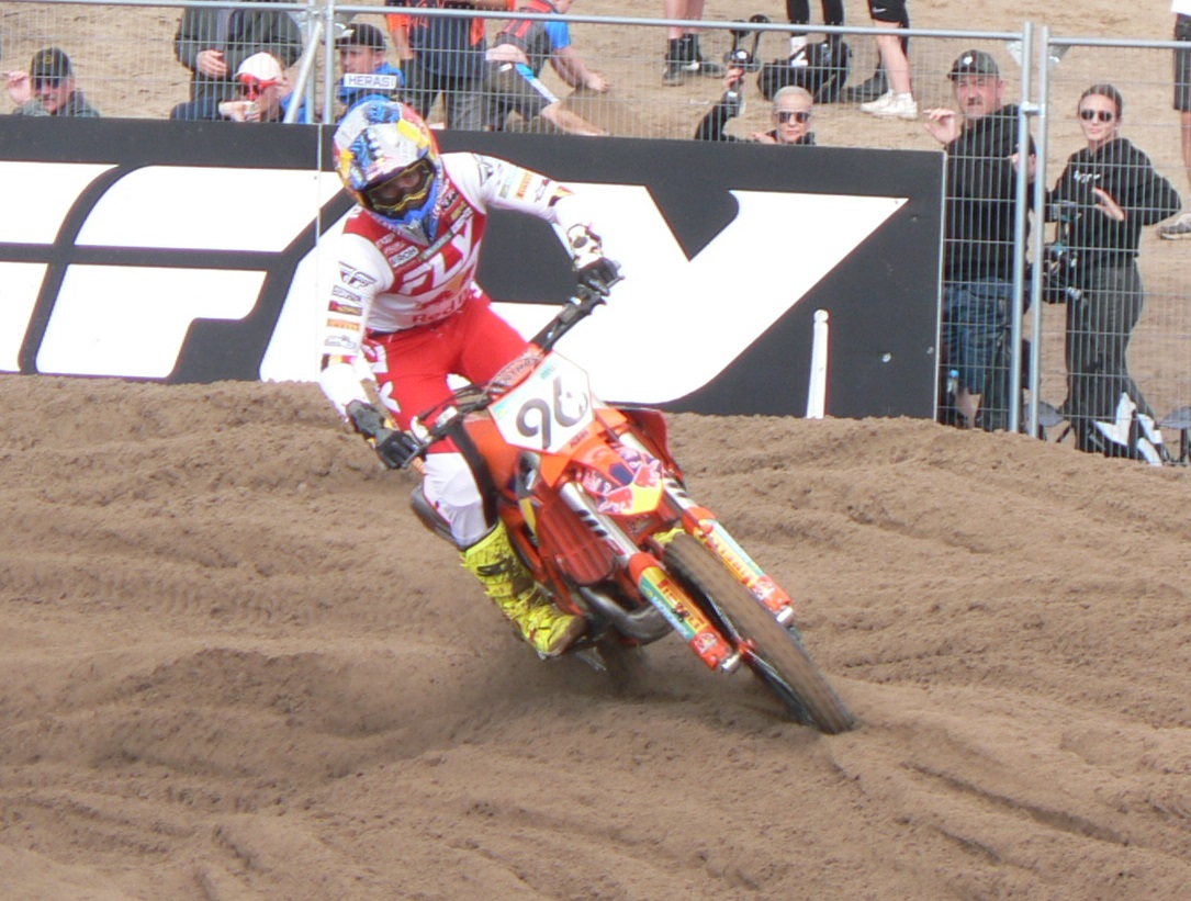 Clou de la journée, la manche MXGP allait permettre au duel entre Lucas Coenen et Romain Febvre de se poursuivre dans un scénario déja mainte fois éprouvé cette saison. Le jeune Belge partait devant son ainé (quoique au-dela du top 5) et après s'être emparé de la tête vers la mi-course, il ne la quittait plus,