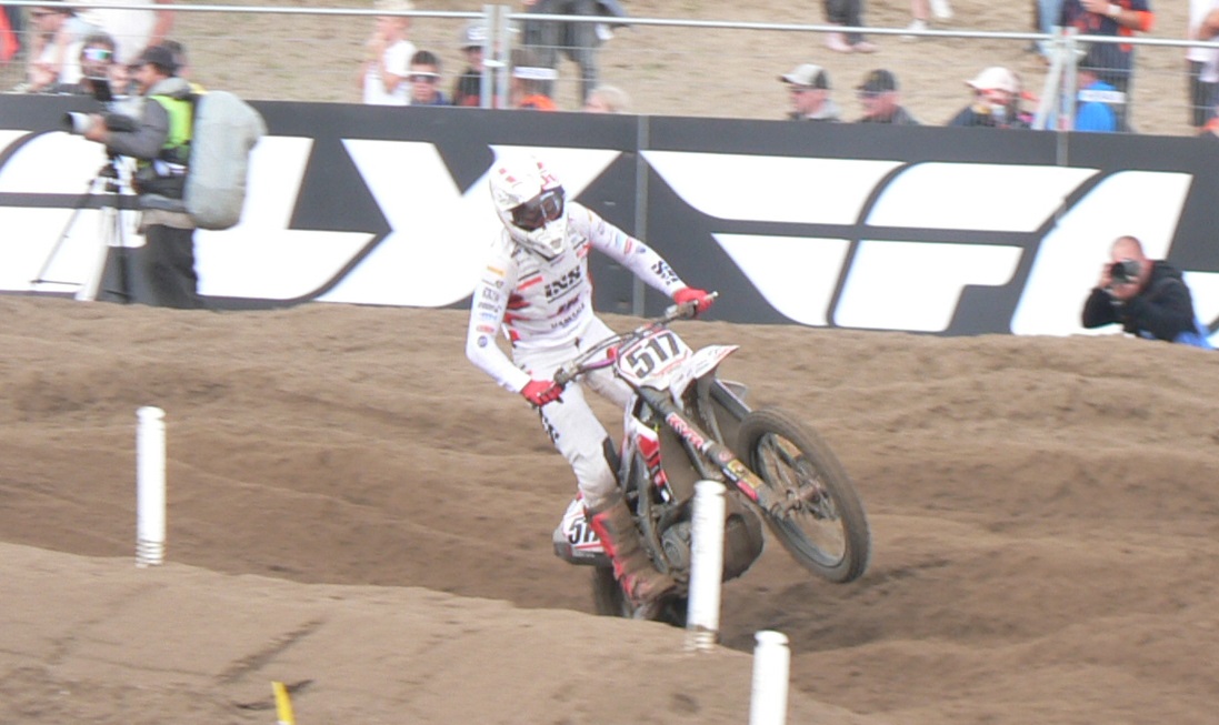 parti dans l'aspiration de son coéquipier belge Jarne Bervoets (ce nom vous évoque-t-il confusément quelque chose ?) qui réalisait le holeshot, quand le leader du championnat se voyait engluer vers la 28ème position.